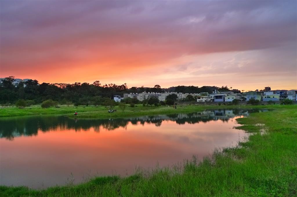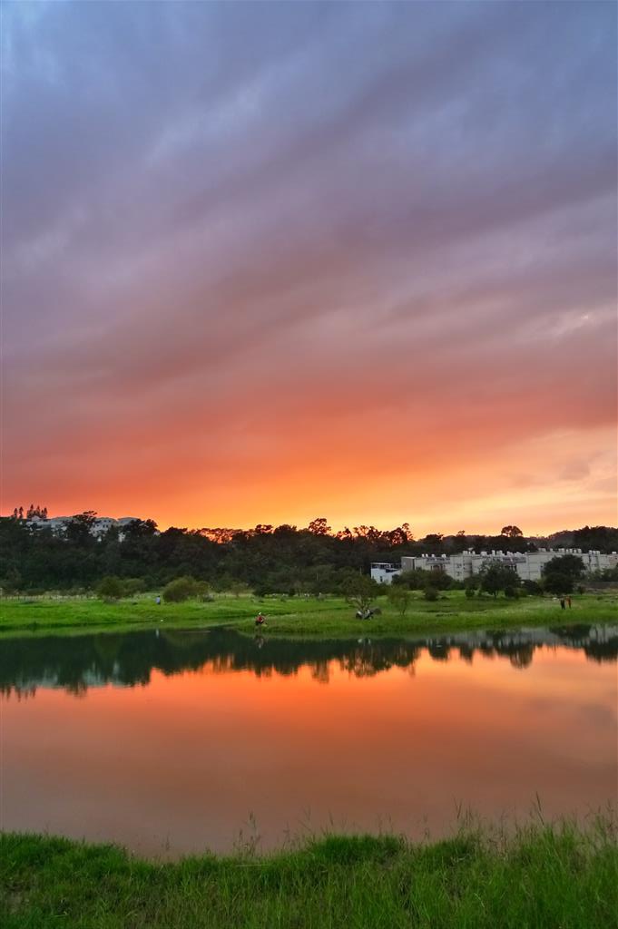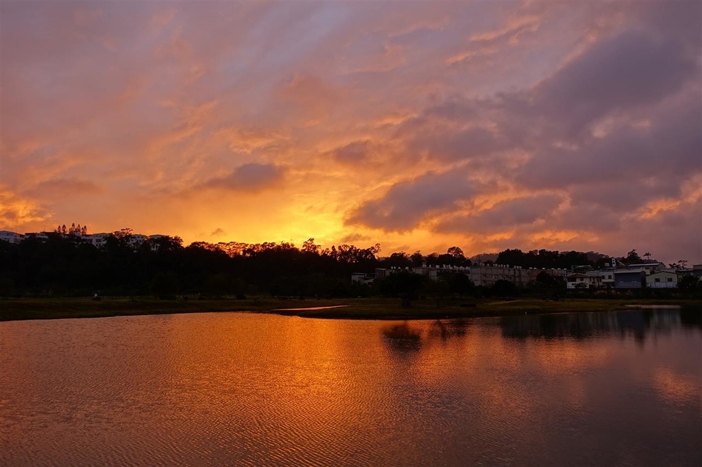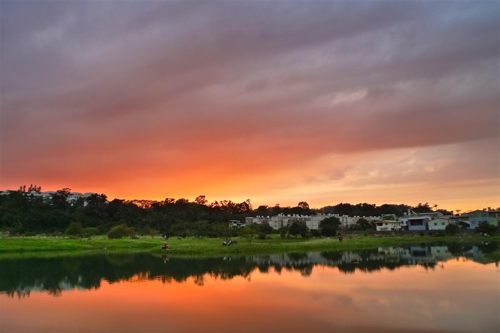 由於早起不易,下班太晚,要在湖邊看到壯麗的彩霞機會應遠小於自家頂樓.