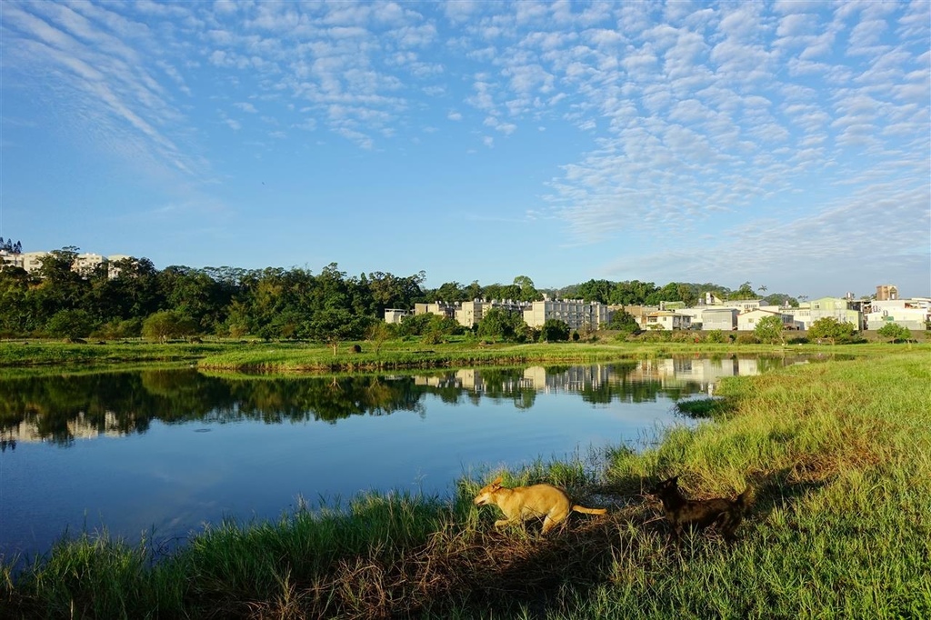 前方的小黃與小黑照樣追逐戲水,只有我很高興早起真好.