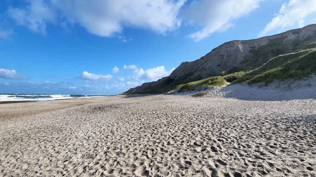 好久沒有踏上如此粗獷的海灘了,北海的風浪、流動的白雲令人想起挪威的綿羊海岸。