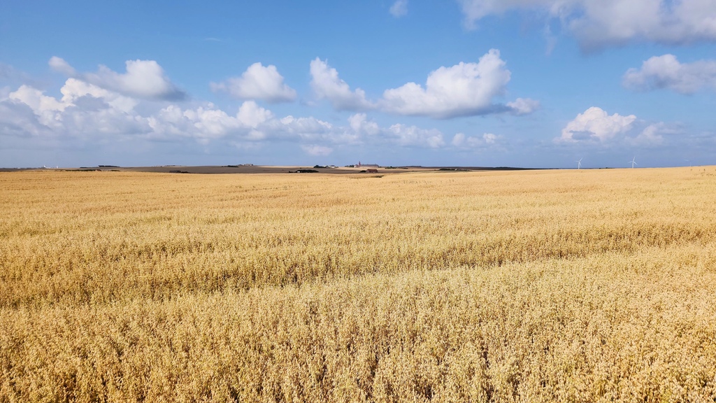 路越來越小,越開越慢,一直想停下來,因為兩旁延伸至天邊的麥田是台灣沒有的景象。