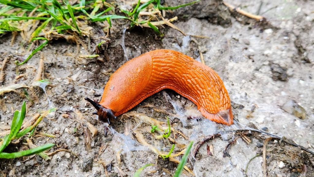 那兩天雨下個不停,可惜了位於暗空公園裡的湖畔小屋,但遇到了這隻碩大又鮮艷的蛞蝓。