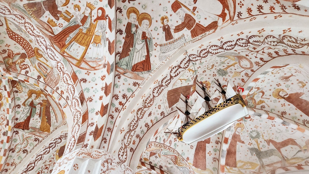 參觀了三座位於三個小村莊裡的教堂。抬頭盡是可愛的壁畫,都有一艘揚滿帆、懸掛國旗的船。